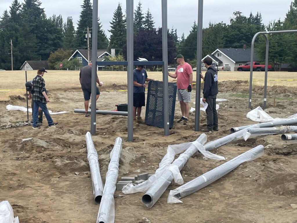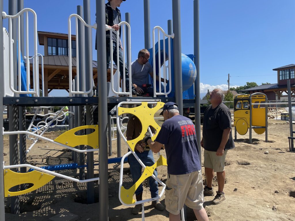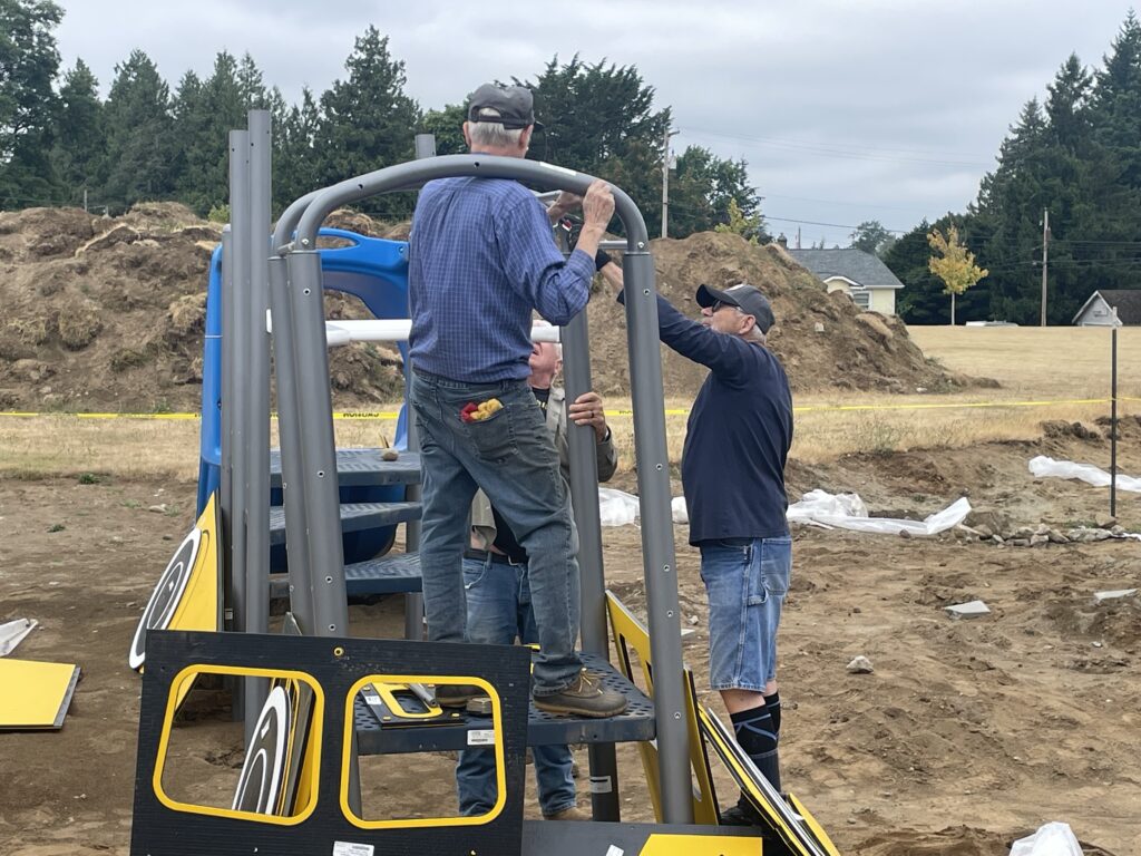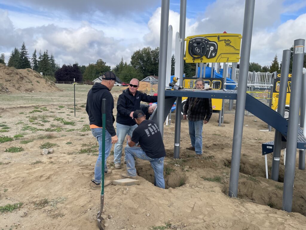 The project was truly a community effort. Eight Kiwanis members joined forces with ten local volunteers, giving their time and energy to assemble the equipment. Together, they invested more than 200 volunteer hours into making this vision a reality. The Lynden Parks Department also played a vital role, providing tools and three dedicated staff members to help ensure the project’s success.