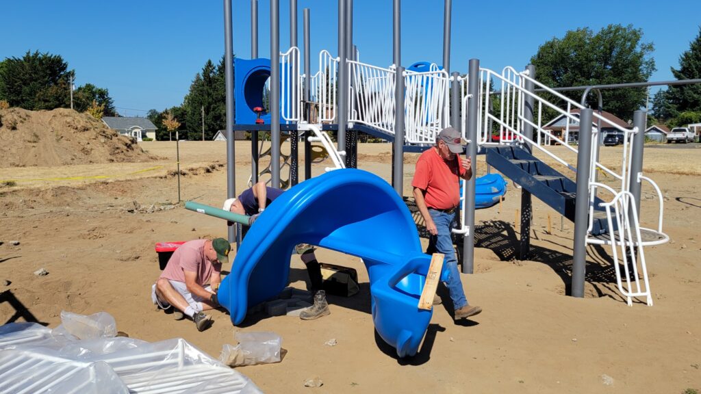 This summer, the Lynden Breakfast Kiwanis Club partnered with the City of Lynden to bring new life to Schoolyard Park on Glenning Street. This project started in the middle of July and finished up one month later towards the end of August in the summer of 2025.